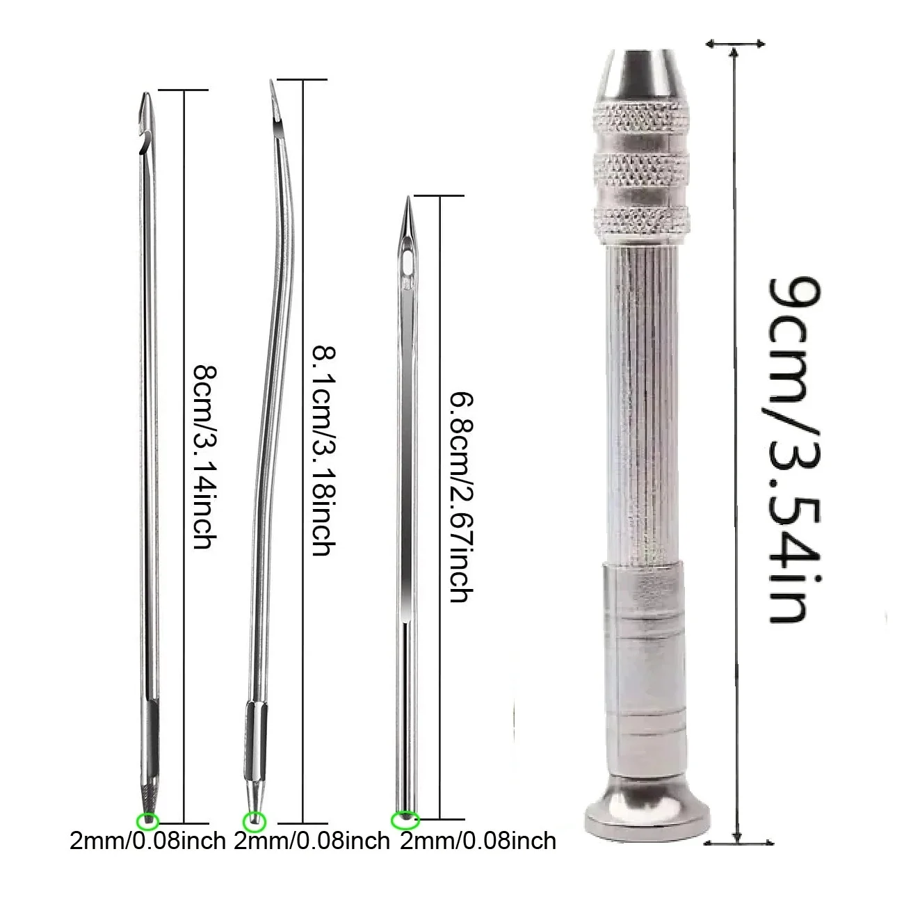 The sharp awl tips easily pierce thick leather for clean, accurate stitches.