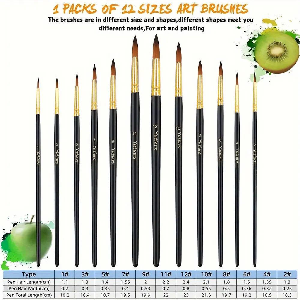 This 12-piece professional brush set is ideal for artists, students, and hobbyists seeking quality tools.