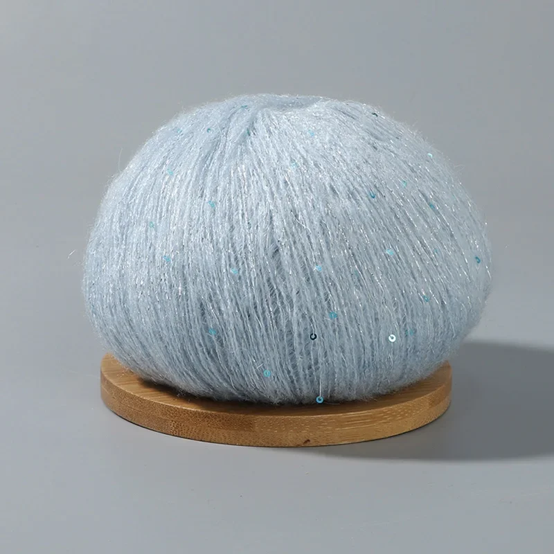 This lace mohair yarn with sequins adds elegance and sparkle to your knitting and crochet projects.