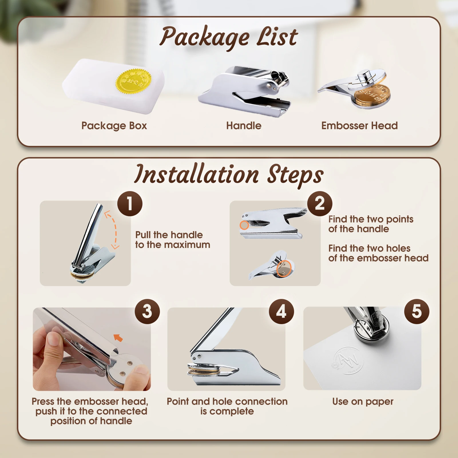 This custom DIY embosser stamp allows you to personalize paper, cards, and envelopes.